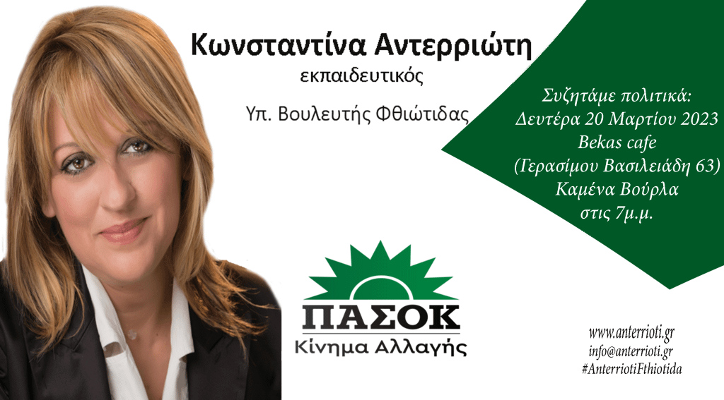 Ανοιχτή πολιτική συζήτηση με τους κατοίκους του δήμου Καμένων Βούρλων. Δευτέρα 20 Μαρτίου ώρα 7μ.μ. Συζητάμε προοδευτικά, δημοκρατικά και ισότιμα στο Bekas cafe (Γερασίμου Βασιλειάδη 63) στα Καμένα Βούρλα